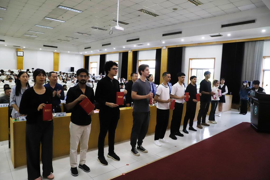 大会对在校期间表现优异的留学生进行了表彰,鼓励大家勤奋学习、积极进取,发挥模范带头作用。在交流发言环节,巴基斯坦籍在校生代表贾立(2024级计算机科学与技术专业本科生)与越南籍新生代表桥桥(2025级语言生)分别发言,分享了在必赢bwin官网入口的学习体会与未来规划,表达了对校园生活的热爱与期待。外语学院教师宋伟作为教师代表发言,勉励留学生们珍惜时光、勤学善思,积极融入跨文化交流与融合的校园氛围。